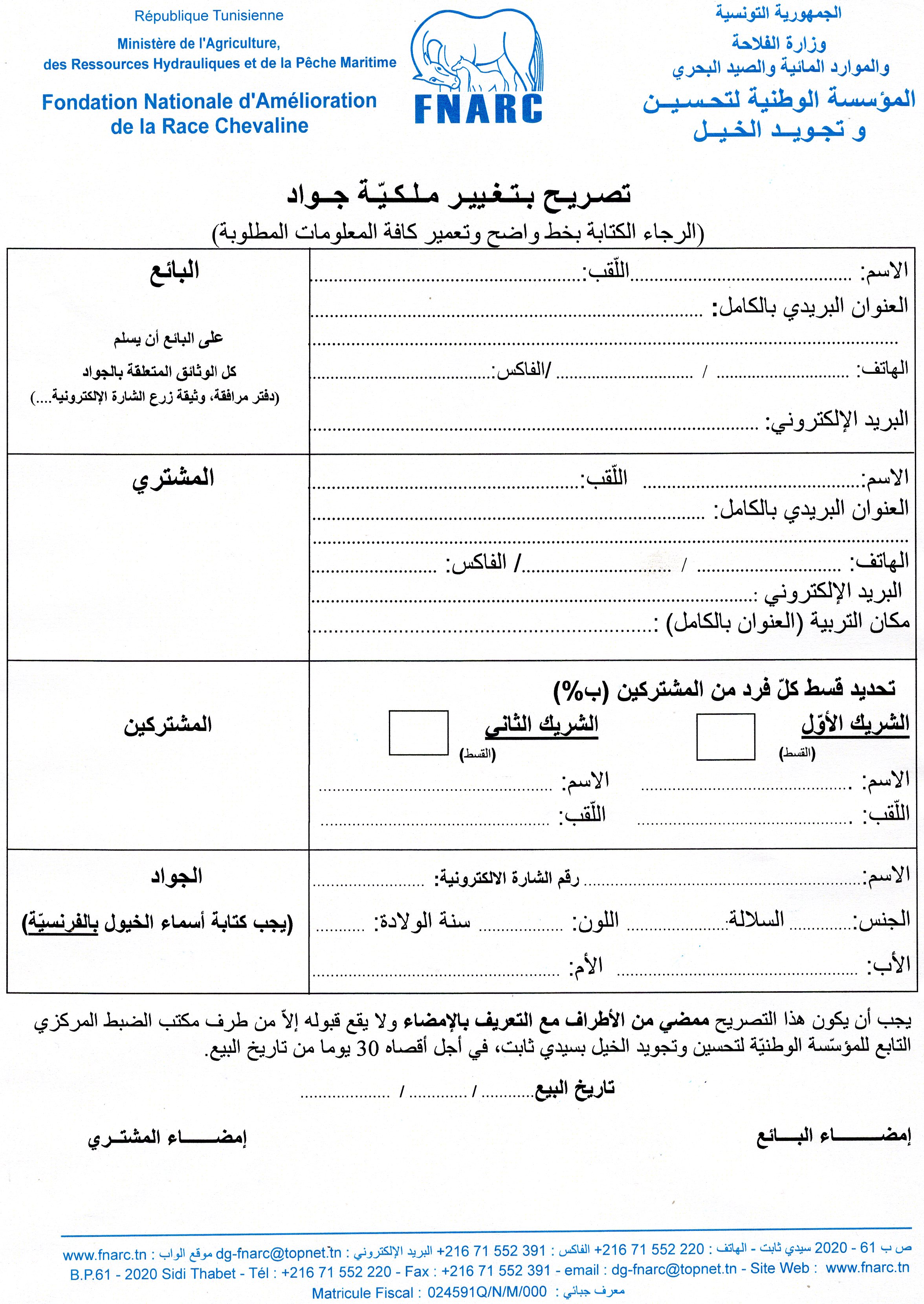 - DEMANDE D’INSCRIPTION D’UNE JUMENT DE RACE PUR SANG ARABE SUITEE AU CONCOURS DE MODELE ET ALLURES,