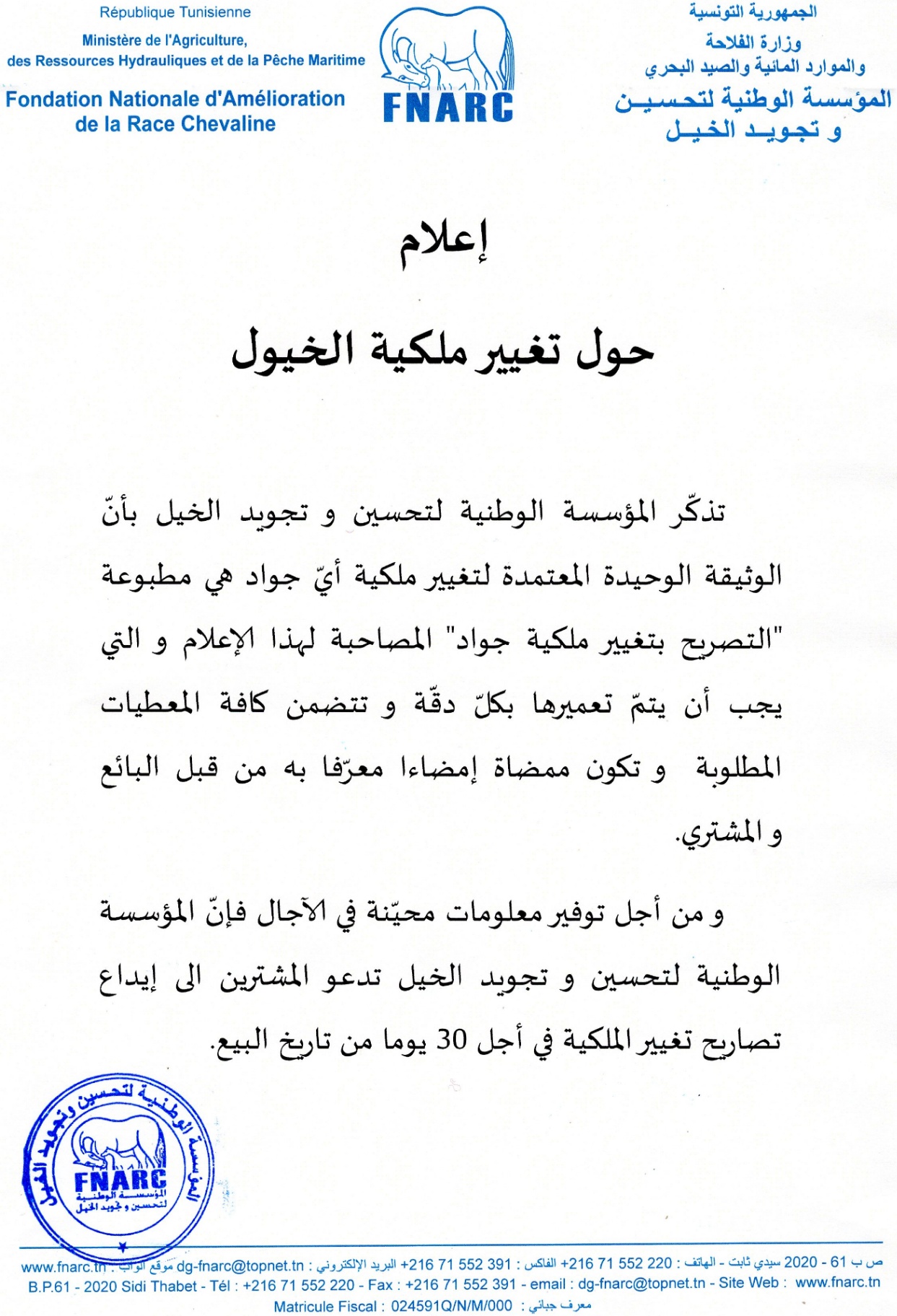 - NOTICE FOR HORSE BREEDERS ON THE CHANGE OF OWNERSHIP,